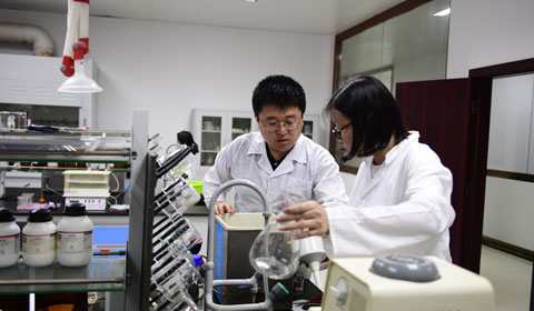 藍灣科技與中國工程院院士、北京化工大學校長譚天偉(左)團隊合作                  藍灣科技與上海交通大學教授、美國斯坦福大學博士傅磊(右二)團隊合作